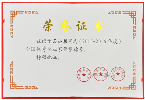 根据中国企业联合会、中国企业家协会、中国企业管理科学基金会《关于表彰2015―2016年度全国优秀企业家的决定》(中国企联[2016]7号),吉祥坊登录公司董事长、党委书记马小援荣获“2015-2016全国优秀企业家”荣誉称号!